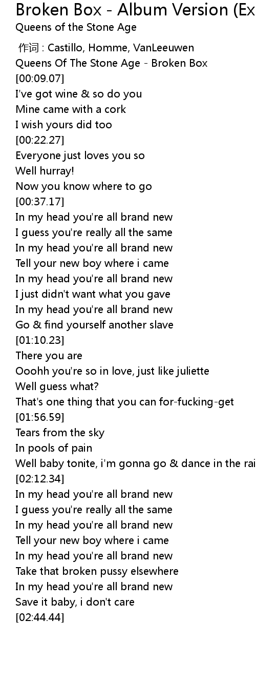 | [00:00.00] | Queens Of The Stone Age Broken Box |