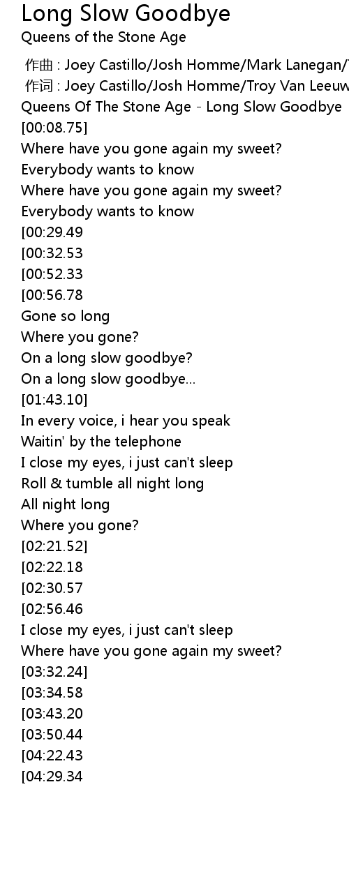 | [00:00.00] | Queens Of The Stone Age Long Slow Goodbye |