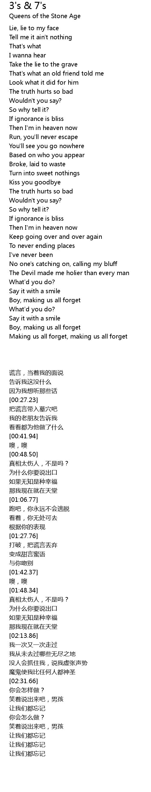 3's & 7's Lyrics