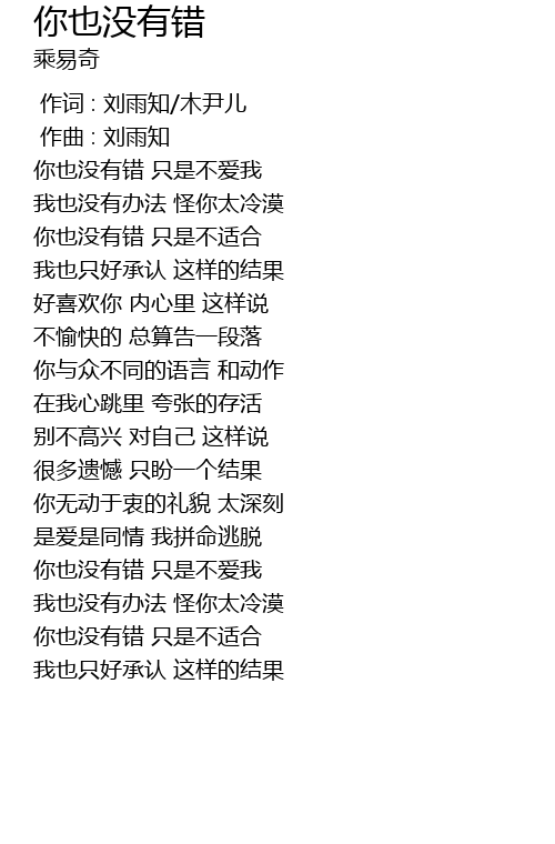 | [00:01.441] | nǐ yě méi yǒu cuò zhǐ shì bù ài wǒ |