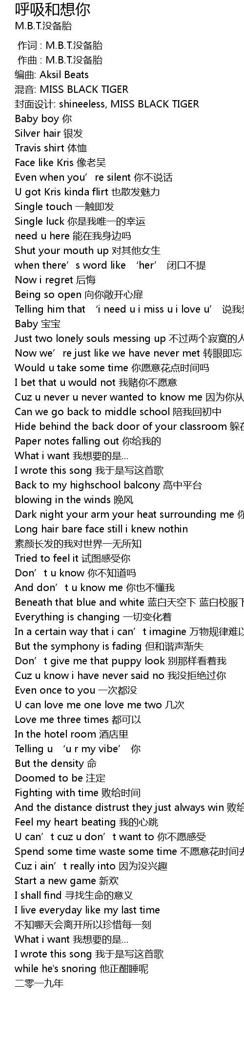 | [00:00.000] | 作词 : M.B.T.没备胎 |