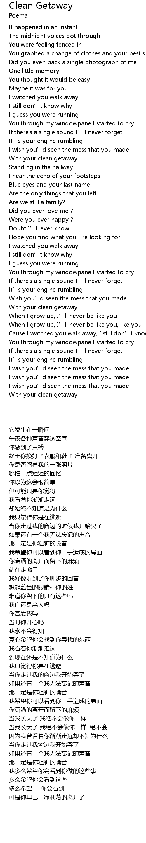 | [03:42.87] | With your clean getaway |