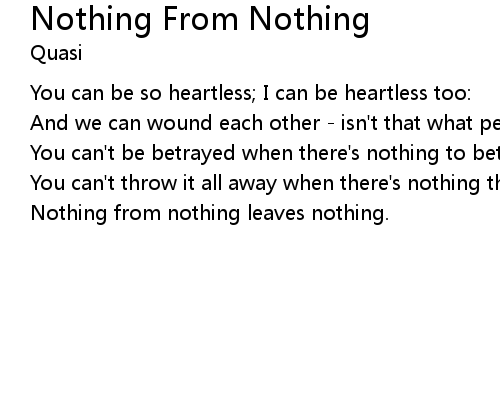 | Nothing from nothing leaves nothing. |