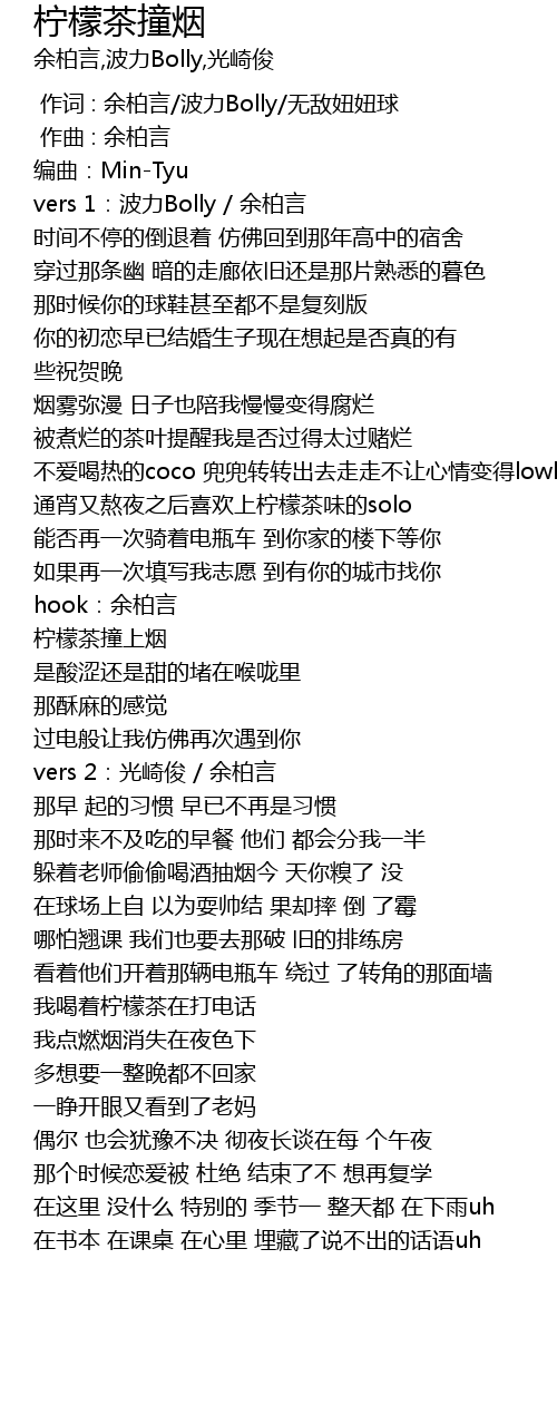 | [00:54.517] | 通宵又熬夜之后喜欢上柠檬茶味的solo |