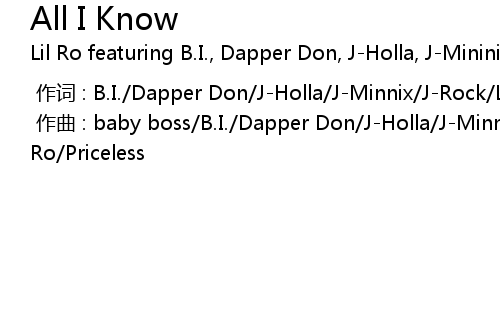 | [00:00.000] | 作词 : B.I./Dapper Don/J-Holla/J-Minnix/J-Rock/Lil Ro/Priceless |