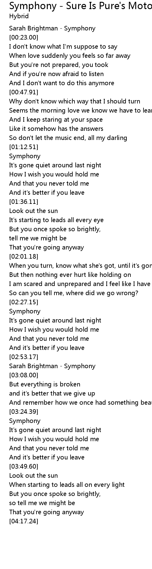 Symphony - Sure Is Pure's Moto Disco Club Lyrics