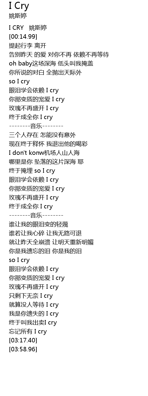 | [00:06.67] | I CRY 姚斯婷 |