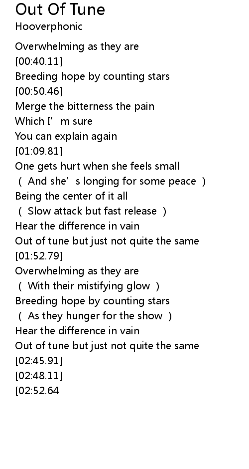 | [01:23.92] | ( And she’s longing for some peace ) |