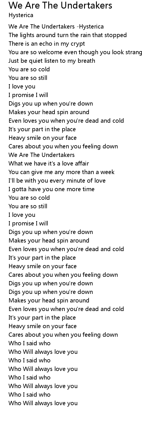 | [00:00.731] | We Are The Undertakers -Hysterica |