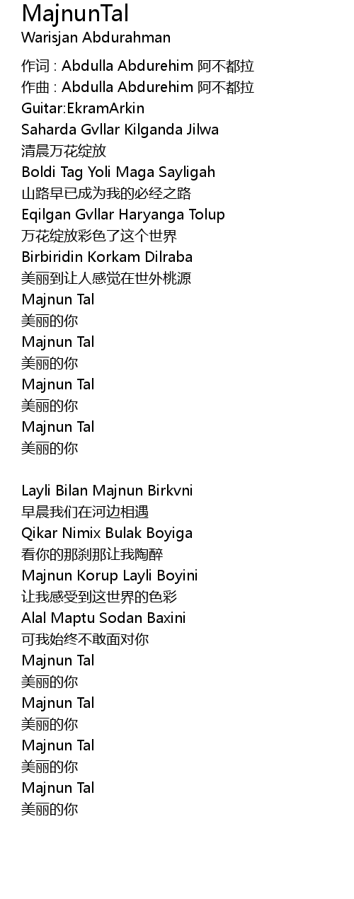 | 作词 : Abdulla Abdurehim 阿不都拉 | |
