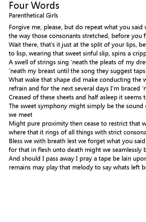 And should I pass away I pray a tape be lain upon my grave and these sweet remains may play that melody to say whats left between these knees at ease |