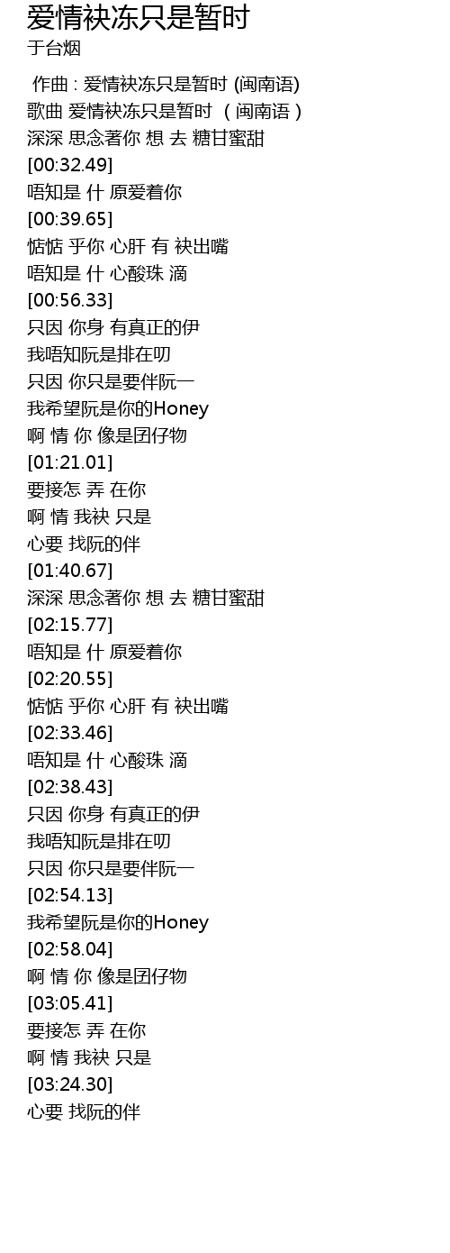 | [00:01.96] | 歌曲 爱情袂冻只是暂时 (闽南语) |