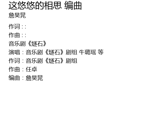 | Album | 音乐剧《燧石》(庆祝新中国成立70周年、纪念五四运动100周年献礼剧目)编曲 |