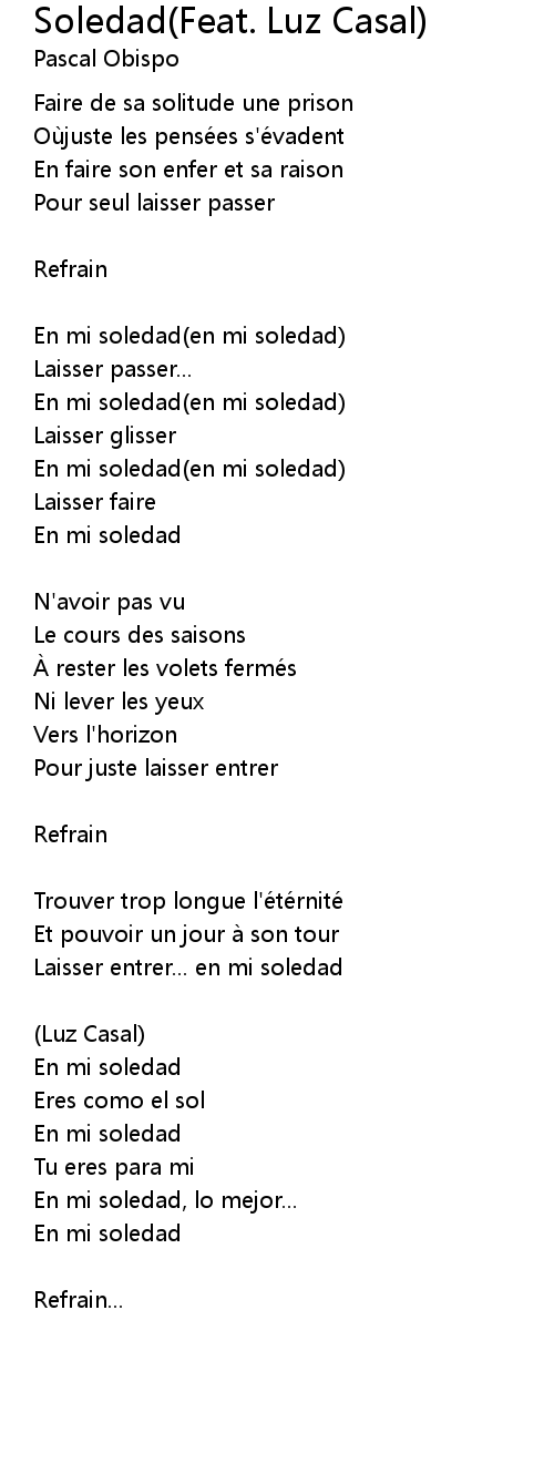 | Song | Soledad(Feat. Luz Casal) |