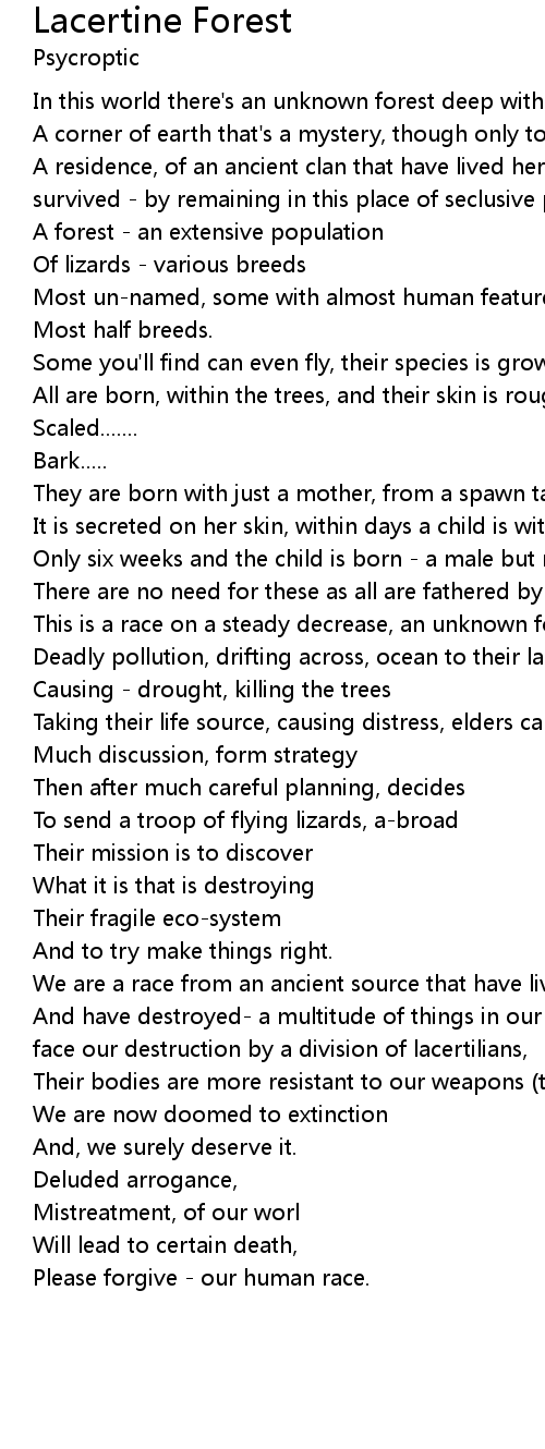 Lacertine Forest Lyrics