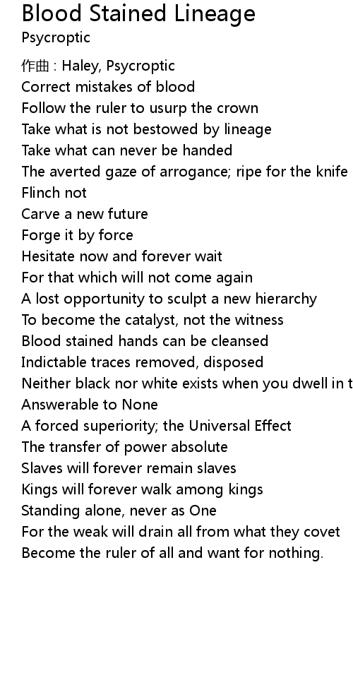 | Song | Blood Stained Lineage |