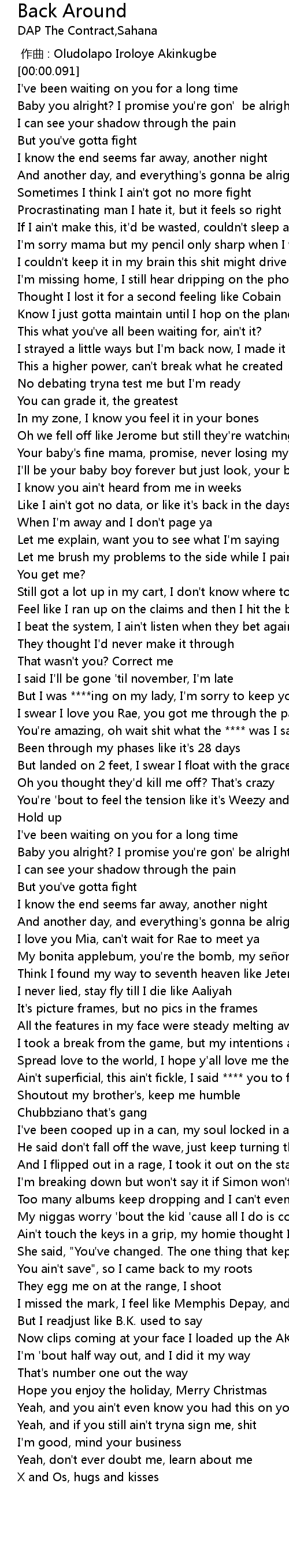 | [02:02.031] | But I was ****ing on my lady, I'm sorry to keep you waiting |