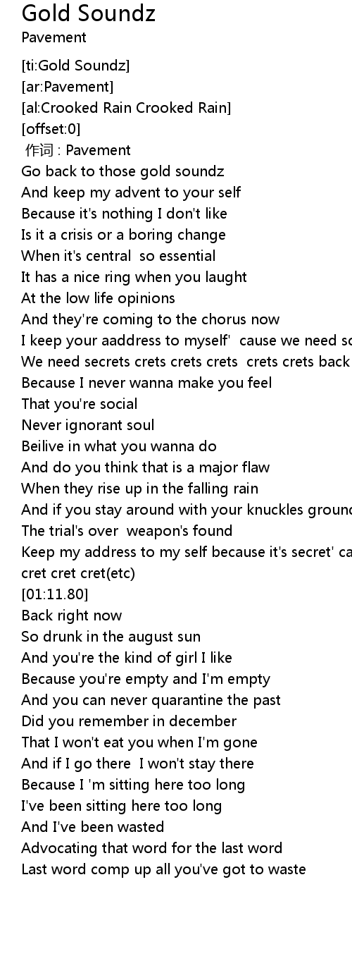 | [00:01.49] | Go back to those gold soundz |