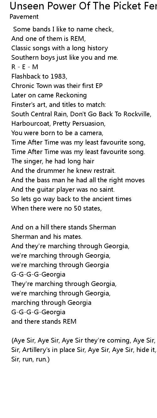 Song Unseen Power Of The Picket Fence