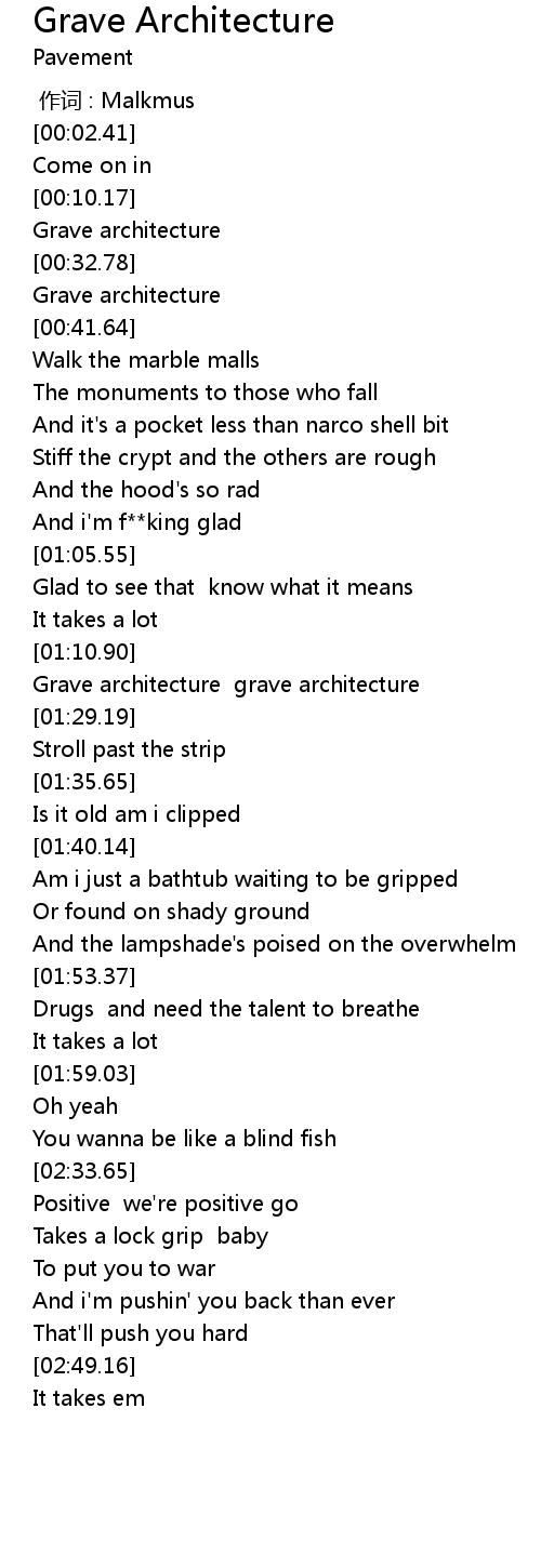 | [00:57.74] | Stiff the crypt and the others are rough |