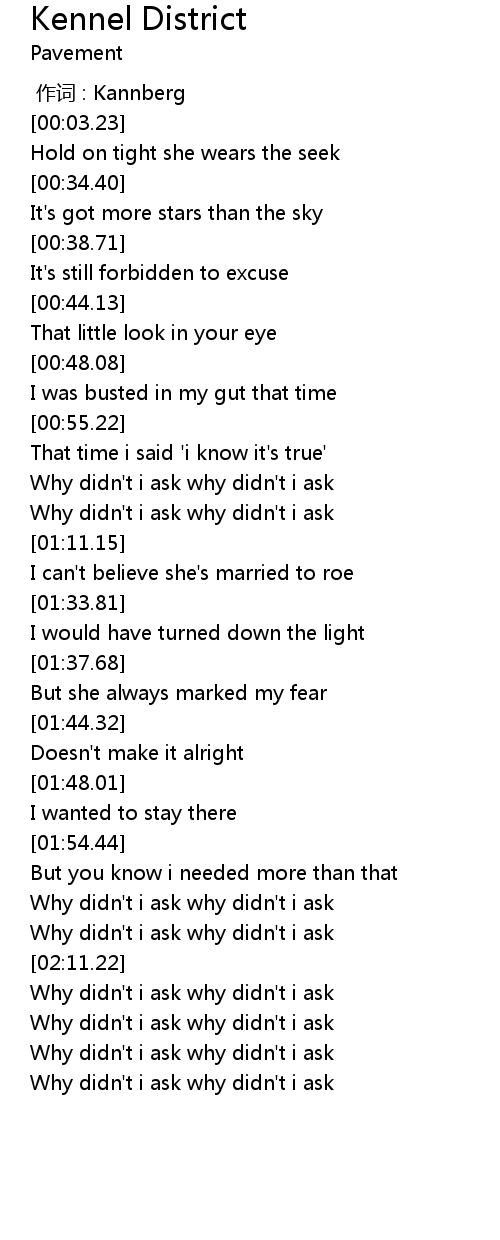 | [02:35.68] | Why didn' t i ask why didn' t i ask |