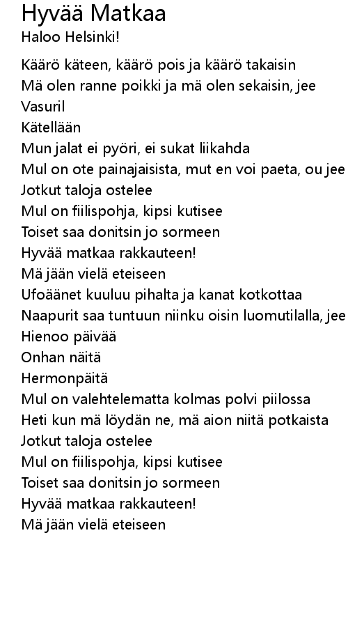 | Song | Hyvää Matkaa |