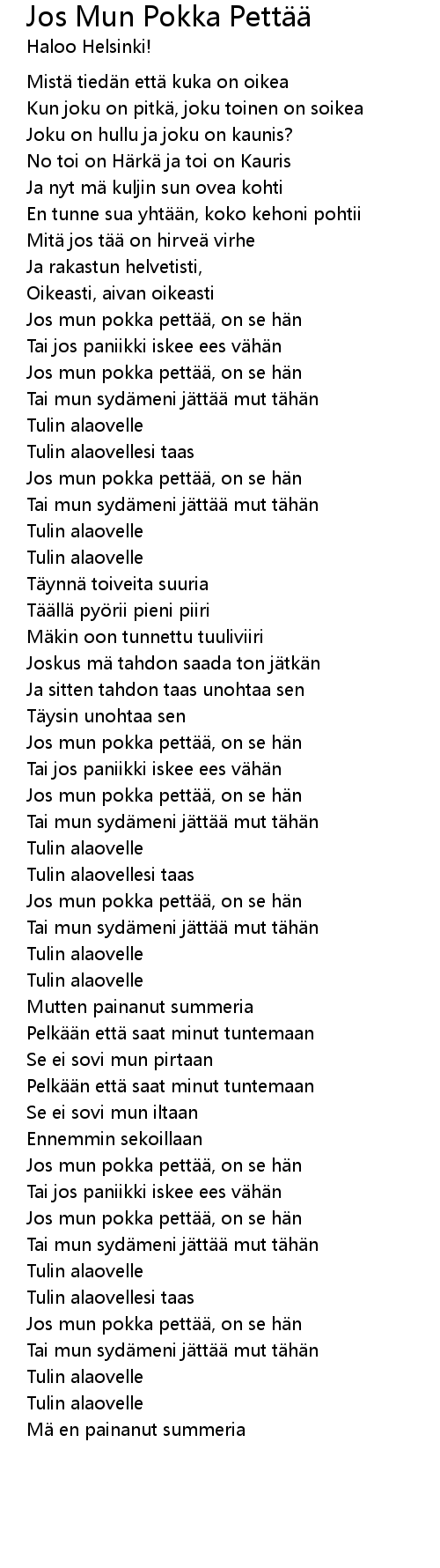 | Song | Jos Mun Pokka Pettää |