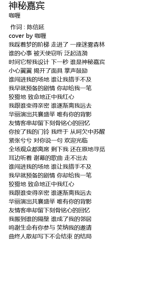 | [00:53.445] | 时间它帮我设计 下一秒 谁是神秘嘉宾 |