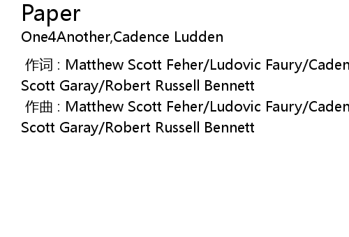 | [00:00.000] | 作曲 : Matthew Scott Feher/Ludovic Faury/Cadence Ludden/Samuel Scott Garay/Robert Russell Bennett |