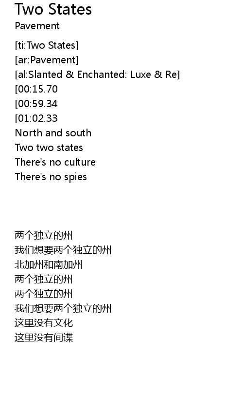 | [00:18.20][01:02.33] | We want two states |