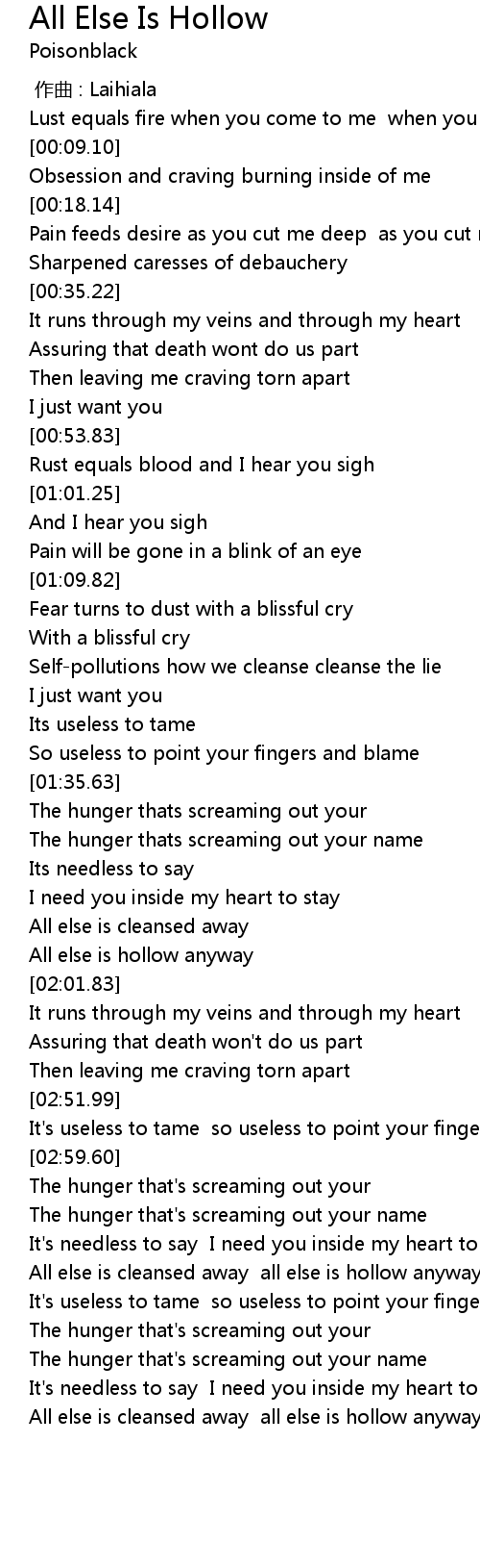 | [01:56.66] | All else is hollow anyway |