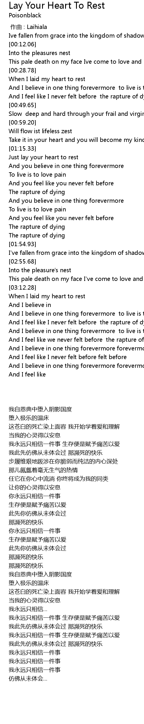 | [03:29.39] | And I feel like I never felt before the rapture of dying |