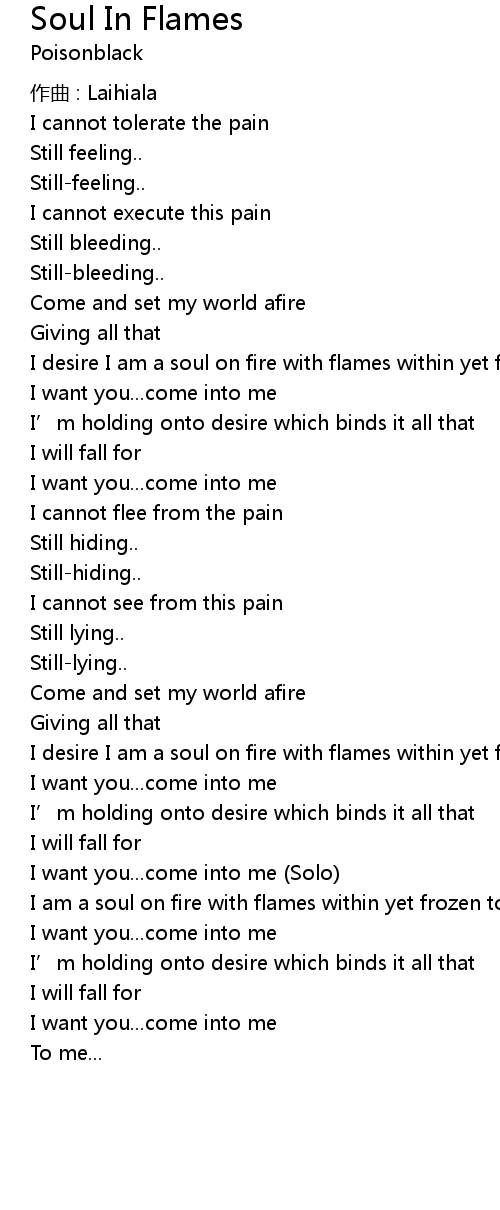| I am a soul on fire with flames within yet frozen to the bone | |