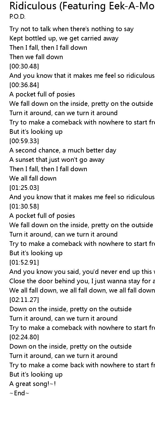 | [00:31.59] | And you know that it makes me feel so ridiculous |