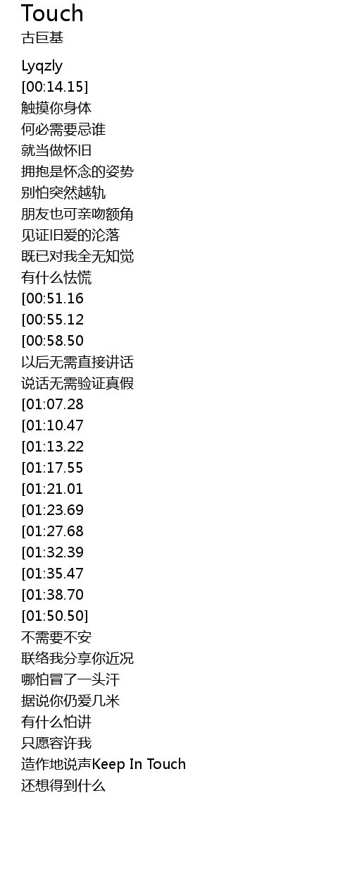 | [00:17.15] | chù mō nǐ shēn tǐ |
