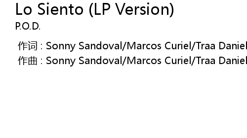 | [00:00.000] | zuo ci : Sonny Sandoval Marcos Curiel Traa Daniels Wuv Bernardo |