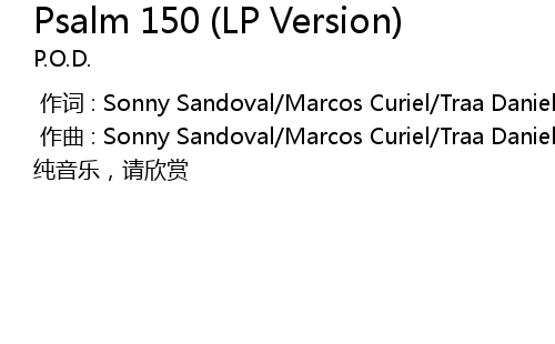 | [00:00.000] | zuo ci : Sonny Sandoval Marcos Curiel Traa Daniels Wuv Bernardo |