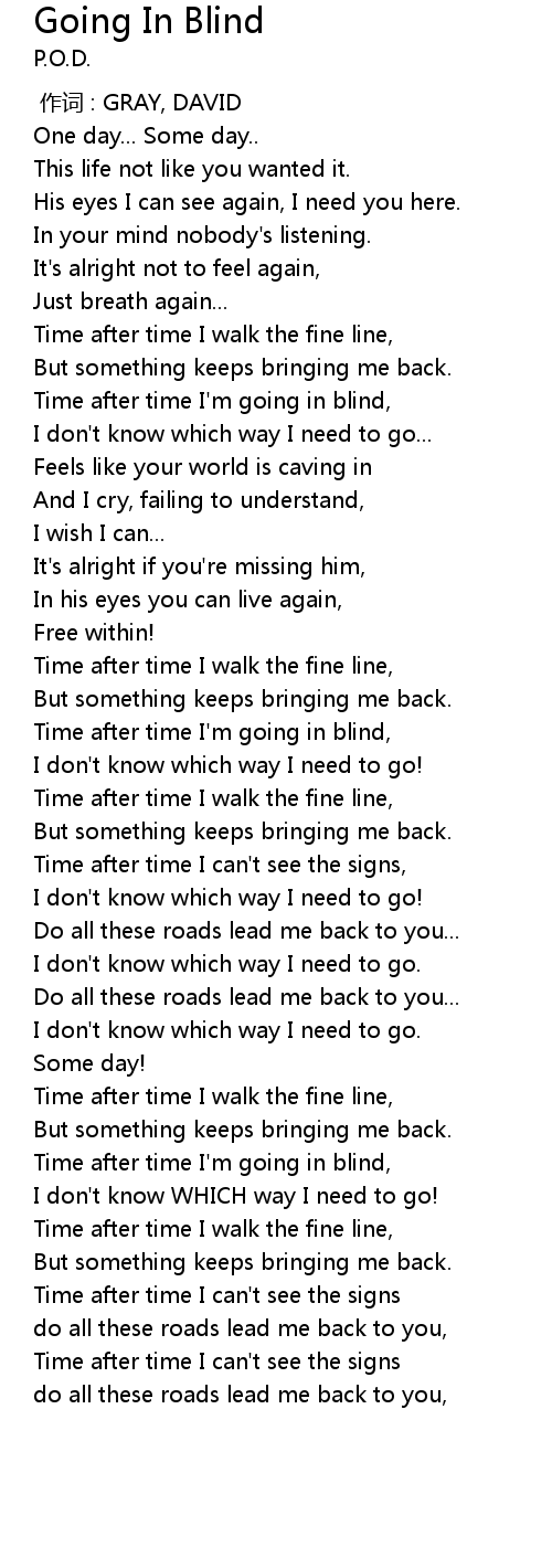 | [02:11.20] | Time after time I' m going in blind, |