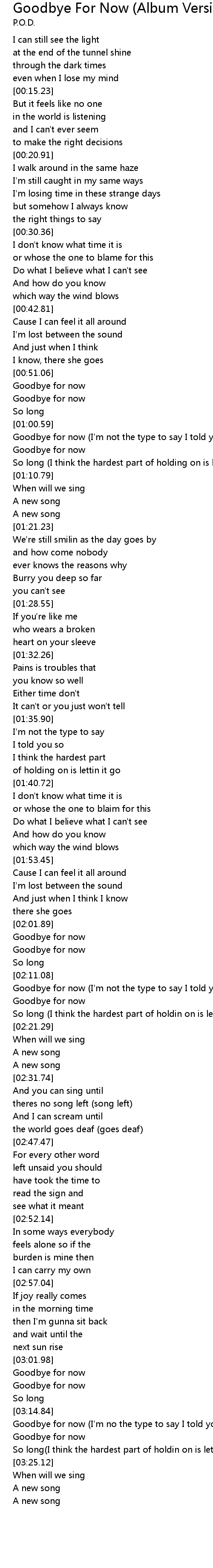 Goodbye for now (I'm no the type to say I told you so) |