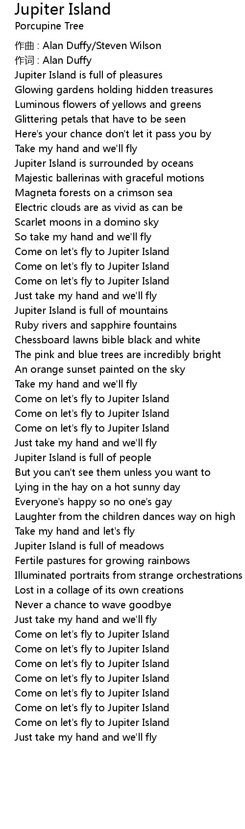 | Song | Jupiter Island |