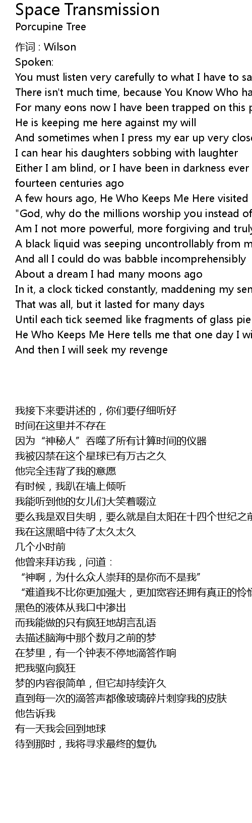 | He Who Keeps Me Here tells me that one day I will return to earth | |
