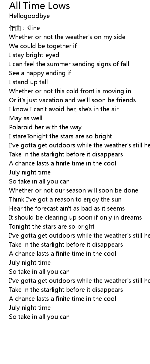 | Song | All Time Lows |