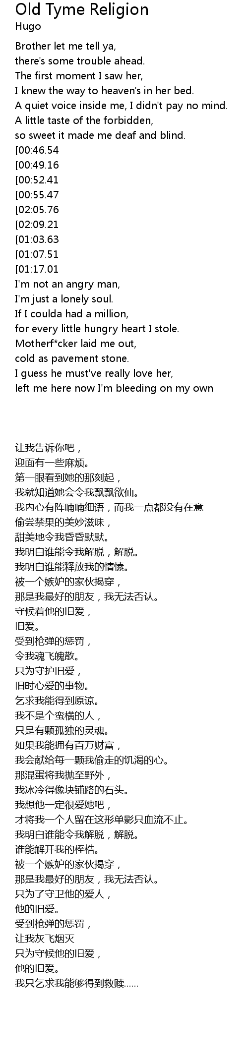 [02:22.35][02:09.21][01:14.32][01:02.09] old tyme religion.