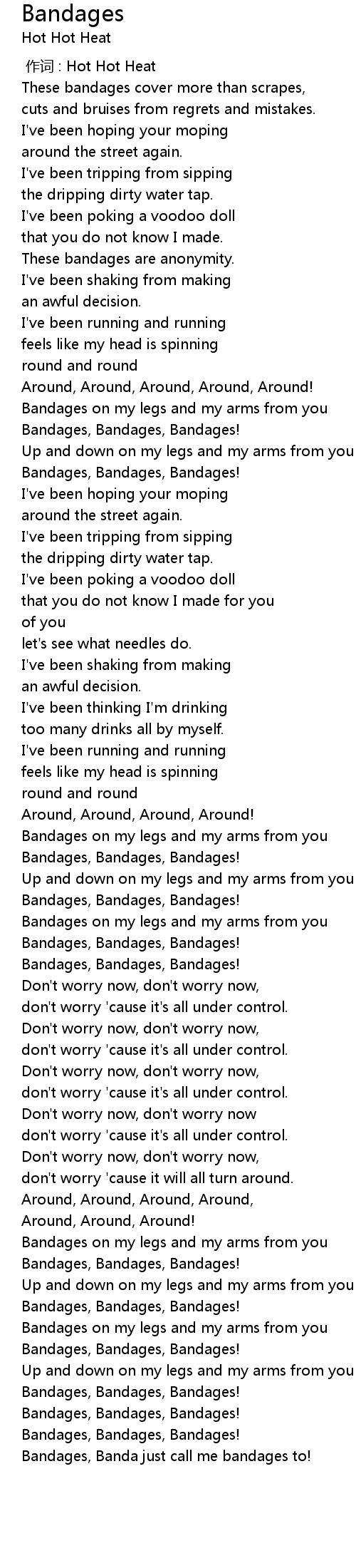 | [02:12.560] | Bandages, Bandages, Bandages! |