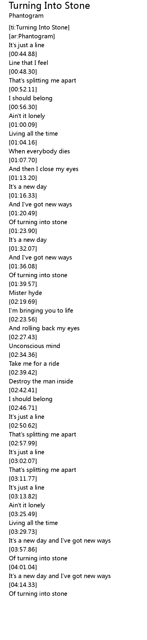 [ti:Turning Into Stone] |