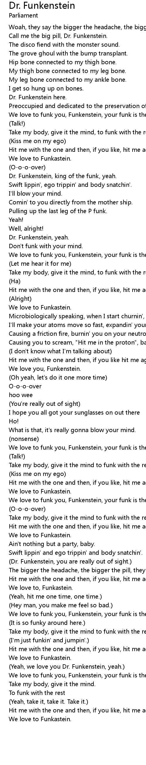 Dr. Funkenstein Lyrics