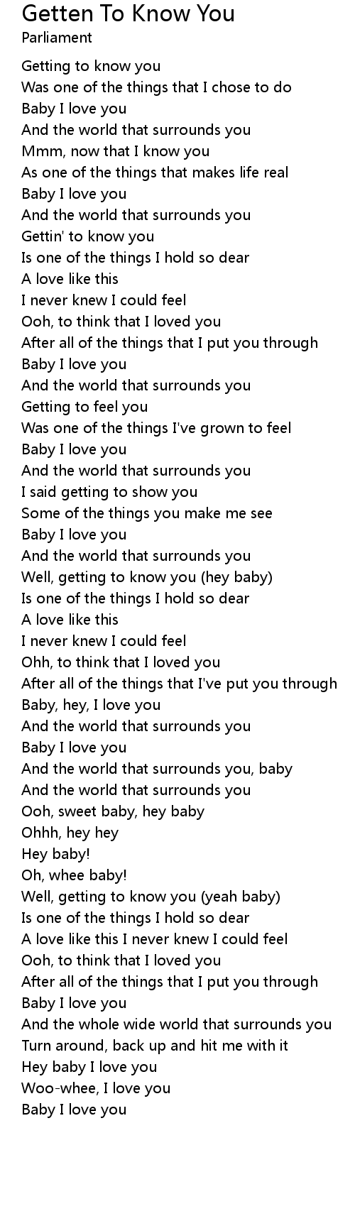 Well, getting to know you (hey baby) |