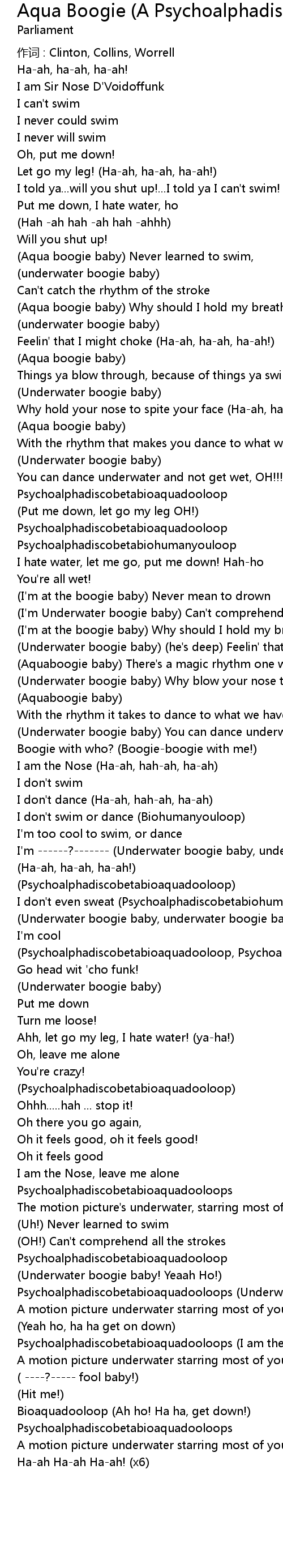| I'm ------?------- (Underwater boogie baby, underwater boogie baba!) | |