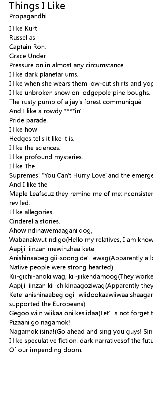 | Song | Things I Like |