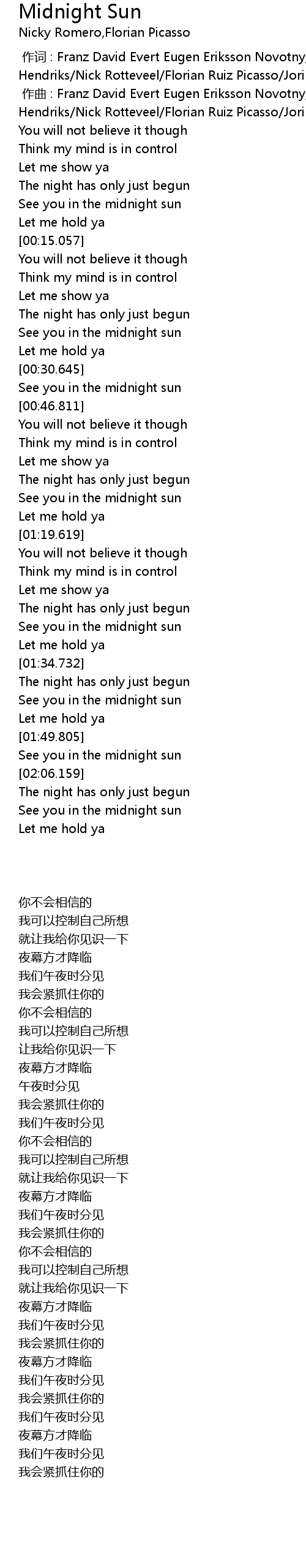 | [02:15.140] | See you in the midnight sun |